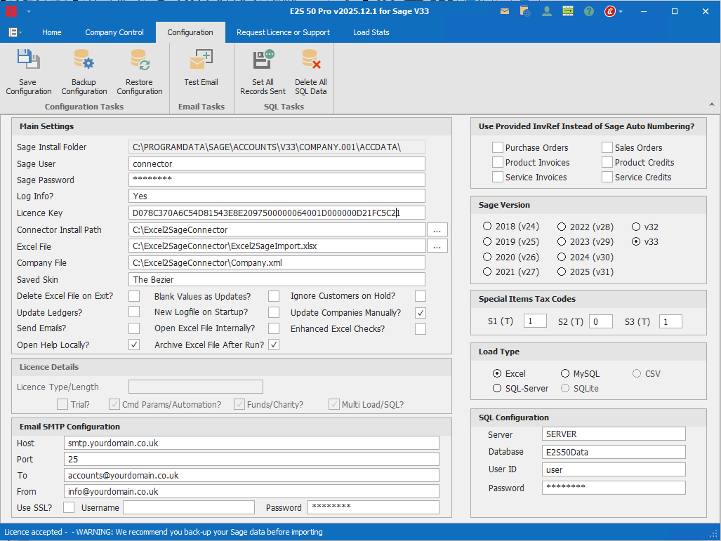 When you upgrade Sage 50, E2S needs to reflect this change.